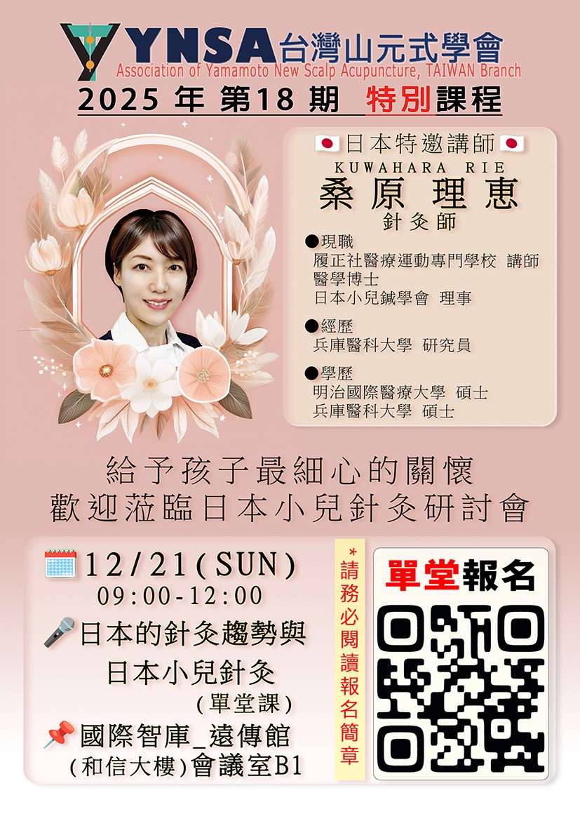 • 主題:日本的針灸趨勢、日本小兒針灸